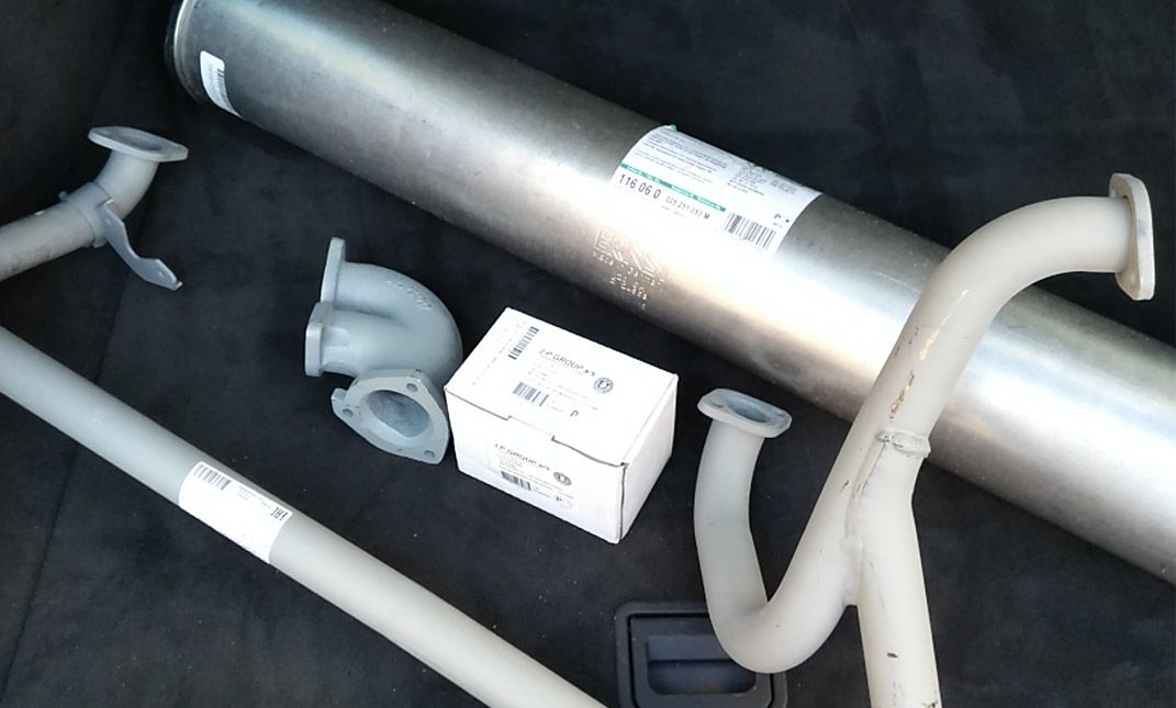 Llegó la hora de cambiar una de las partes que más afectadas estaba, el escape. Éste como digo estaba realmente tocado, con partes de la línea de escape muy oxidadas, jamás sustituidas. En vez de eso, han sido soldadas y parcheadas (y no con mucha habilidad) para salir del paso.
