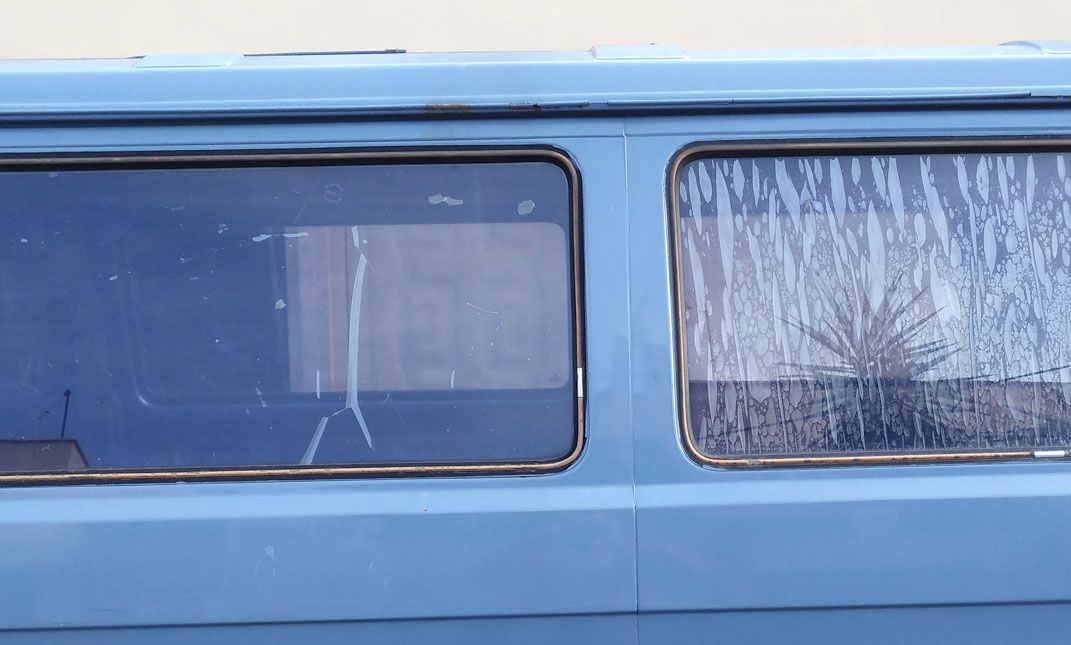 Una de las cosas que tenía pendiente y que tenía ganas de hacer por la mejora estética que iba a suponer, era la eliminación de las láminas solares que llevaba la Syncro. Su estado era deplorable, dolía a la vista ya que estaban medio despegadas. Parecía más bien que alguien se estuviera duchando dentro 🙂