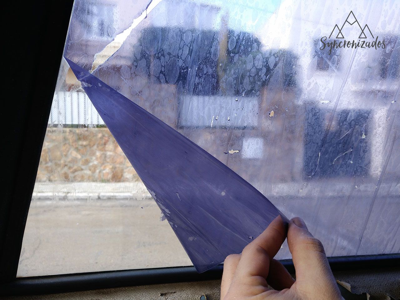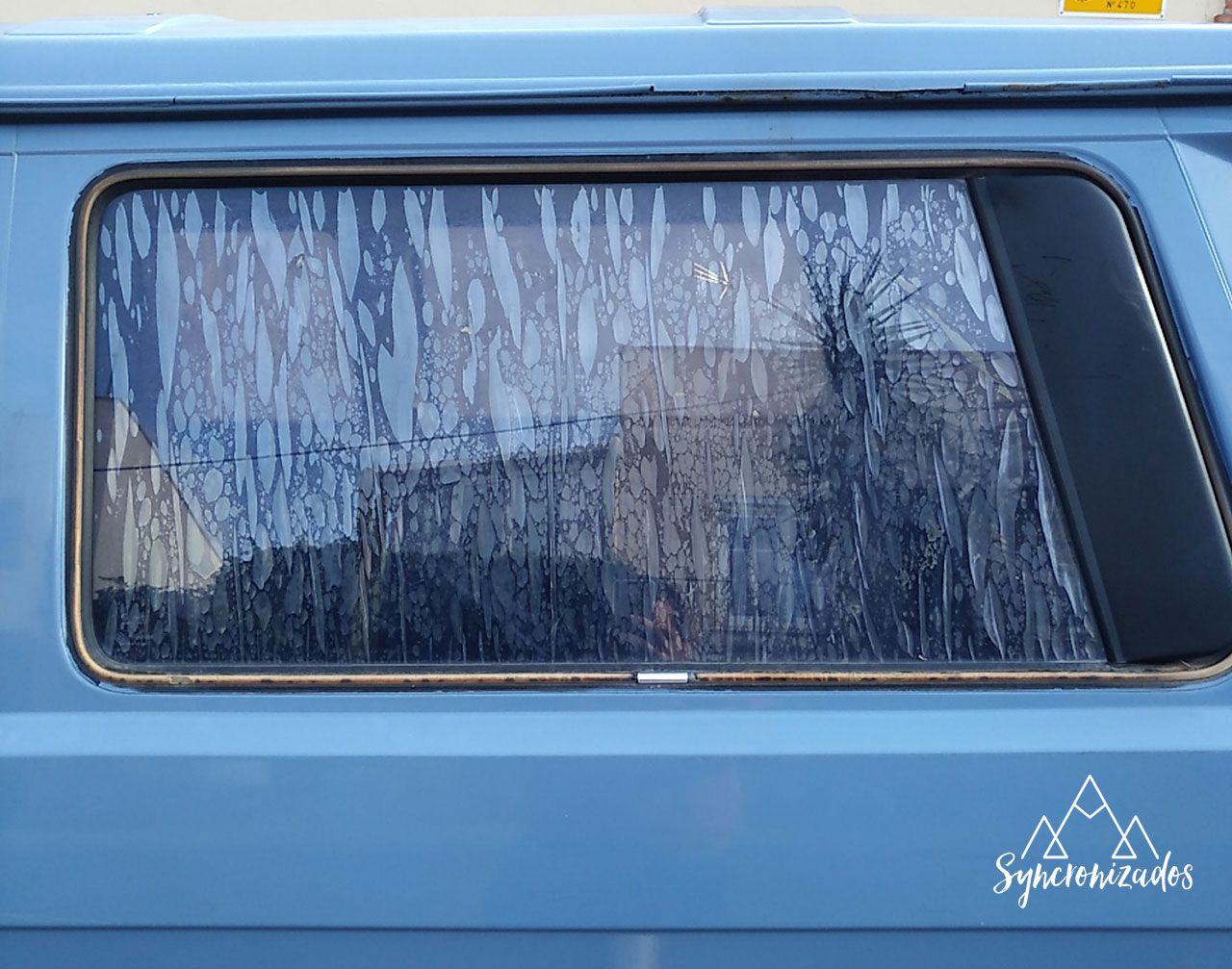 Una de las cosas que tenía pendiente y que tenía ganas de hacer por la mejora estética que iba a suponer, era la eliminación de las láminas solares que llevaba la Syncro. Su estado era deplorable, dolía a la vista ya que estaban medio despegadas. Parecía más bien que alguien se estuviera duchando dentro 🙂