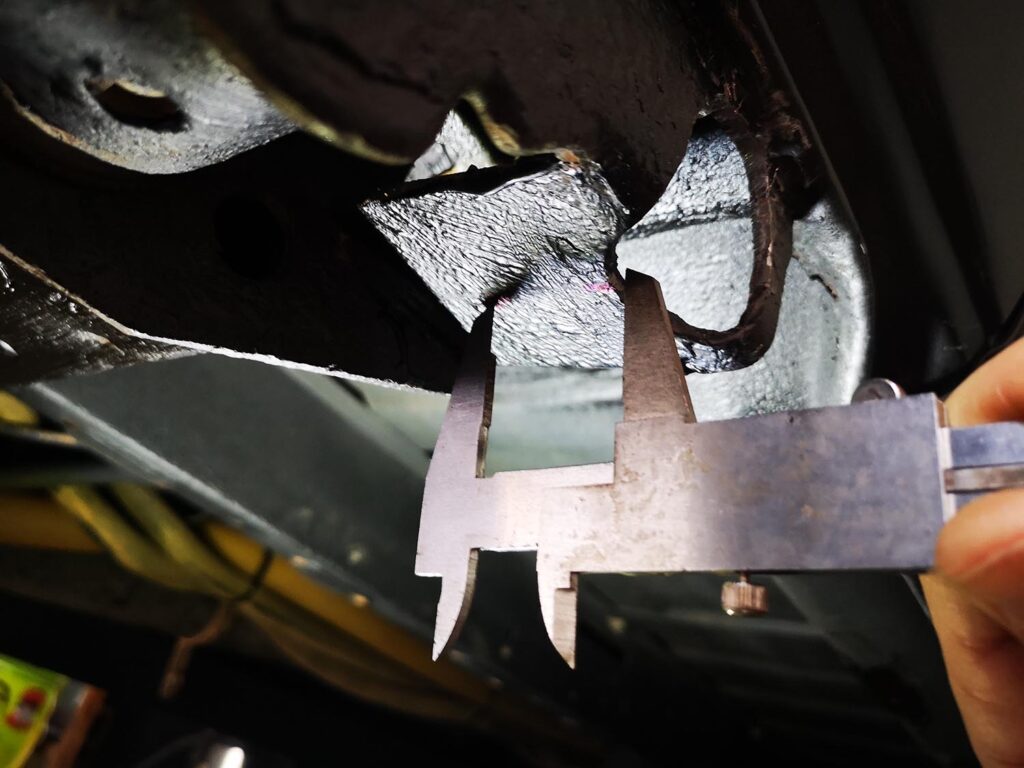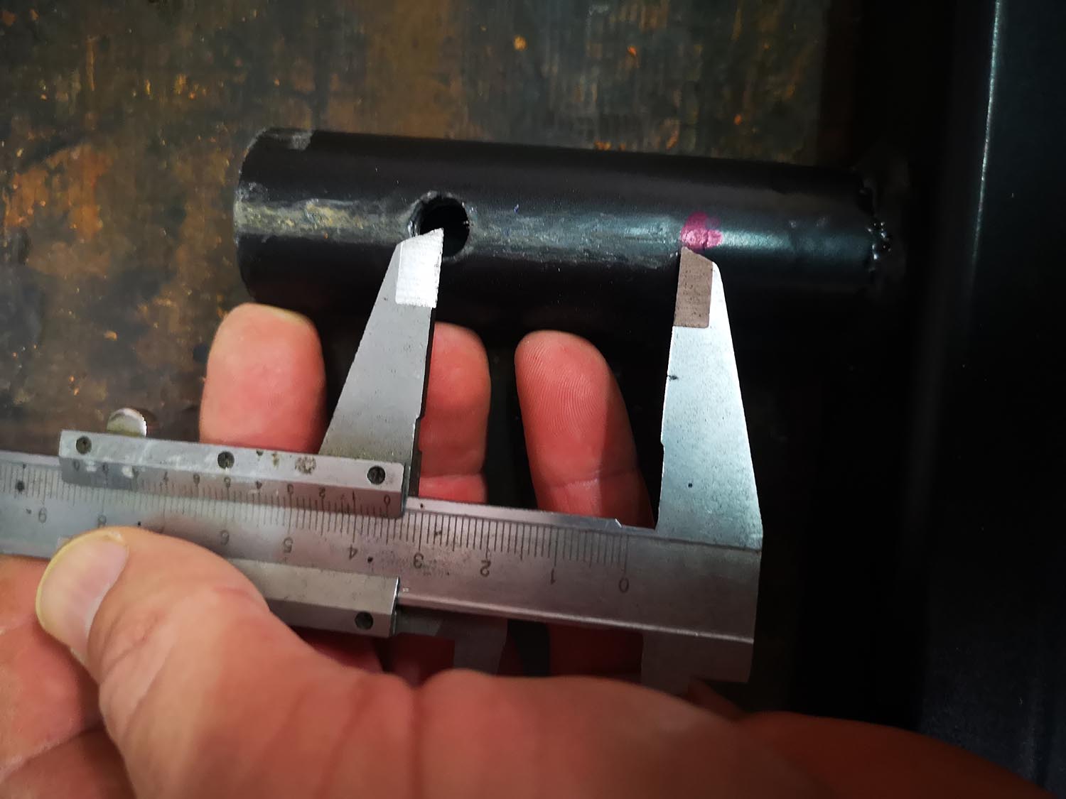 Ahora sacamos la estribera y con un pie de rey medimos la distancia hasta el centro del agujero para luego trasladar esa medida a la profundidad exacta que hay.
