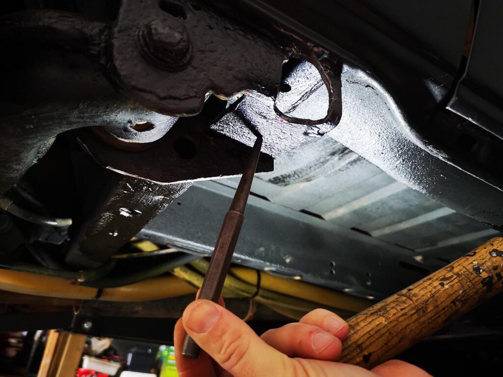 Pues parece sencillo y lo es, pero si las quieres dejar bien hay que currar y dedicarle tiempo. Ahora te explico por qué. Estas estriberas llevan 3 tornillos, uno de sujeción trasera y dos para la delantera junto con una plancha. La cuestión es que se meten en los agujeros que ya trae la furgoneta para poner el gato, colocas los tornillos delanteros junto con la plancha y tan solo habría que hacer el agujero para sujetar el tornillo trasero. Pero, así no nos garantizamos que las estriberas queden niveladas. Lo más seguro es que te queden inclinadas hacia bajo ya que al menos yo he tenido que hacer el agujero más grande para poder levantarlas y nivelarlas lo más posible. Y ahí está lo de currar pues hay que ir comiéndose material. Yo lo intenté con lima de media luna, con la dremel y sus mil y un accesorio y al final lo que me fue mejor es taladro, broca del 10 y pasarla por el material para que los laterales de la broca vayan limando.