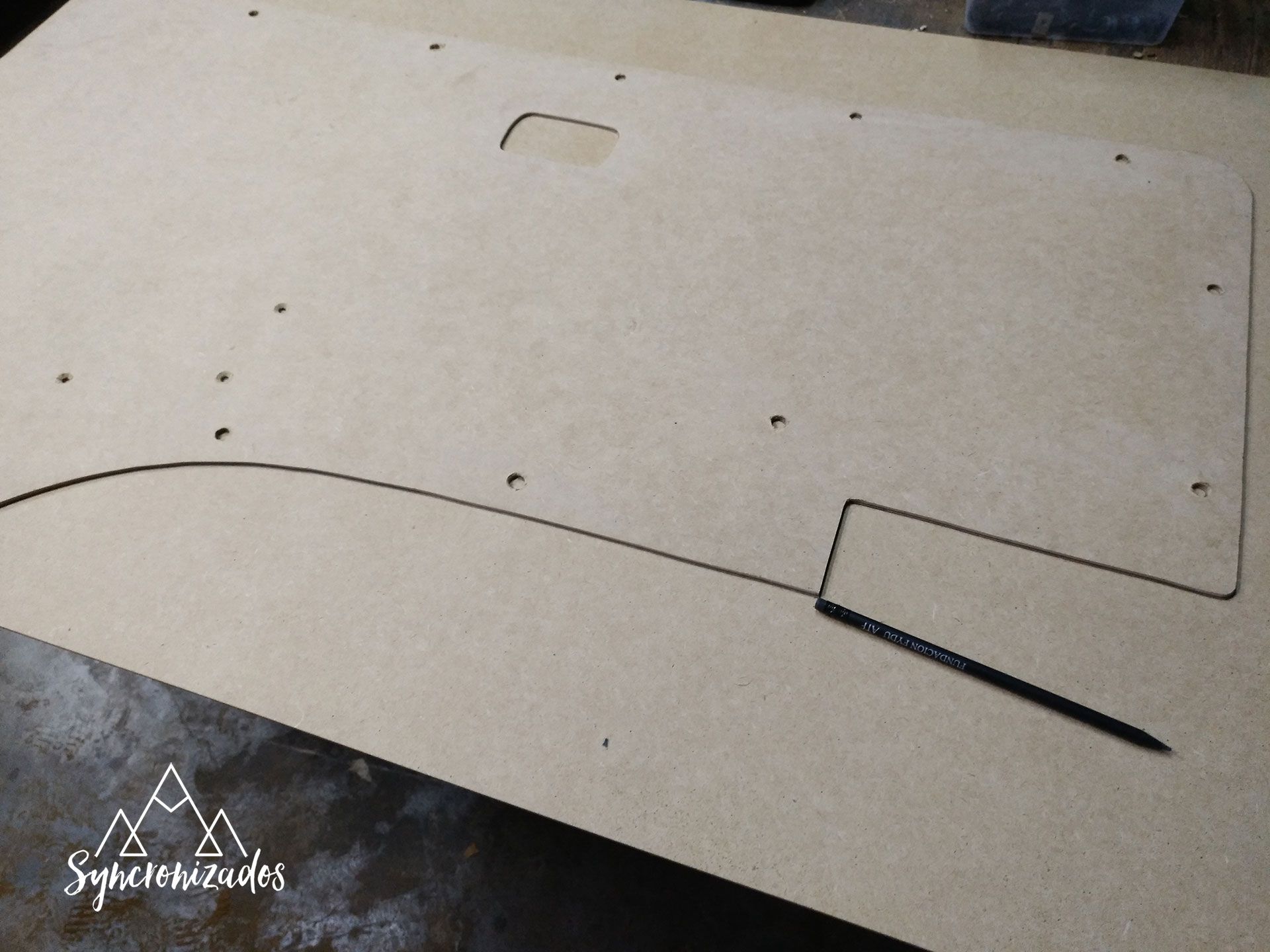 Una vez obtenido la plantilla, con la sierra caladora recorto para dar forma al nuevo panel. Solo nos falta ir haciendo los agujeros que lleva para por ejemplo poner guanteras o tiradores.