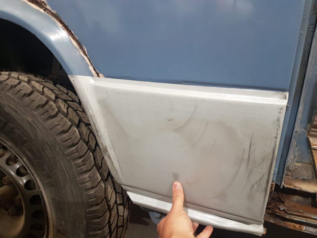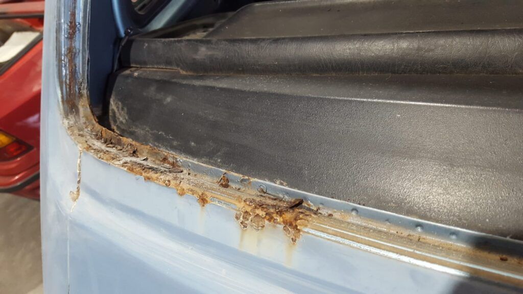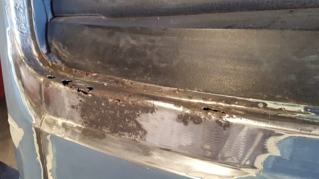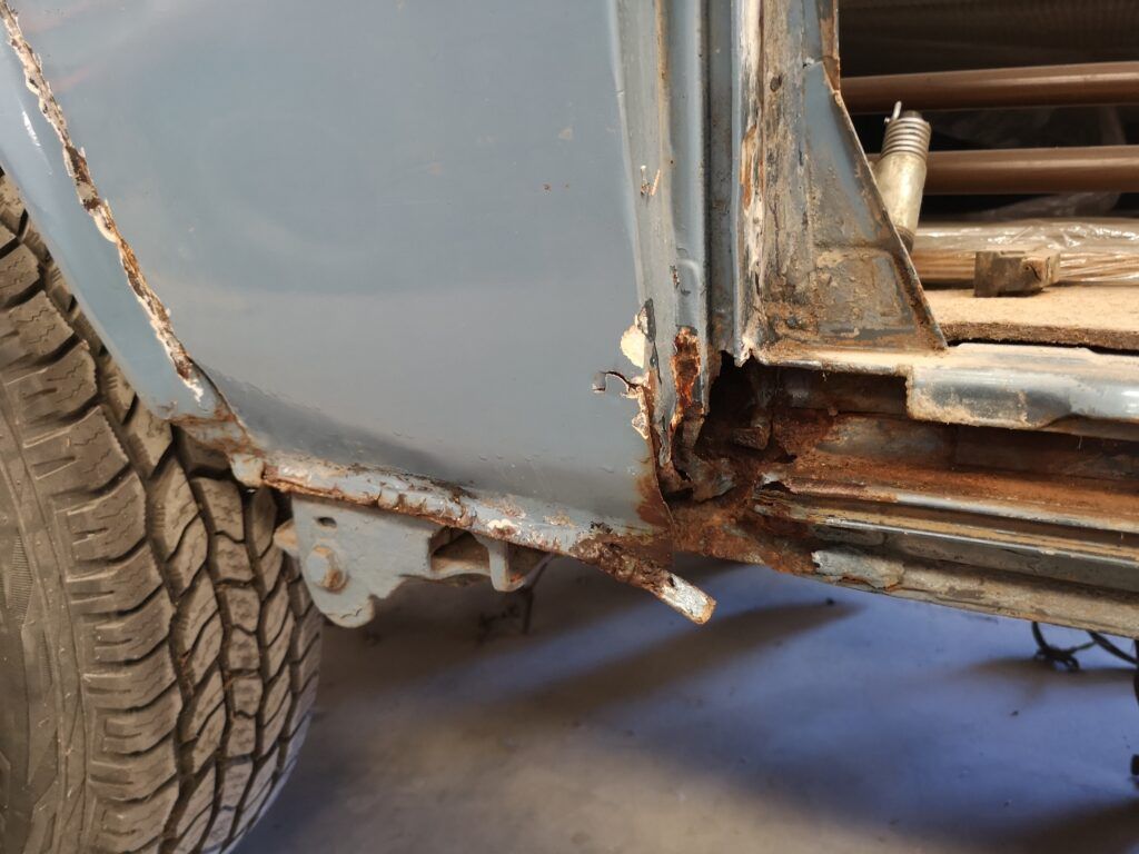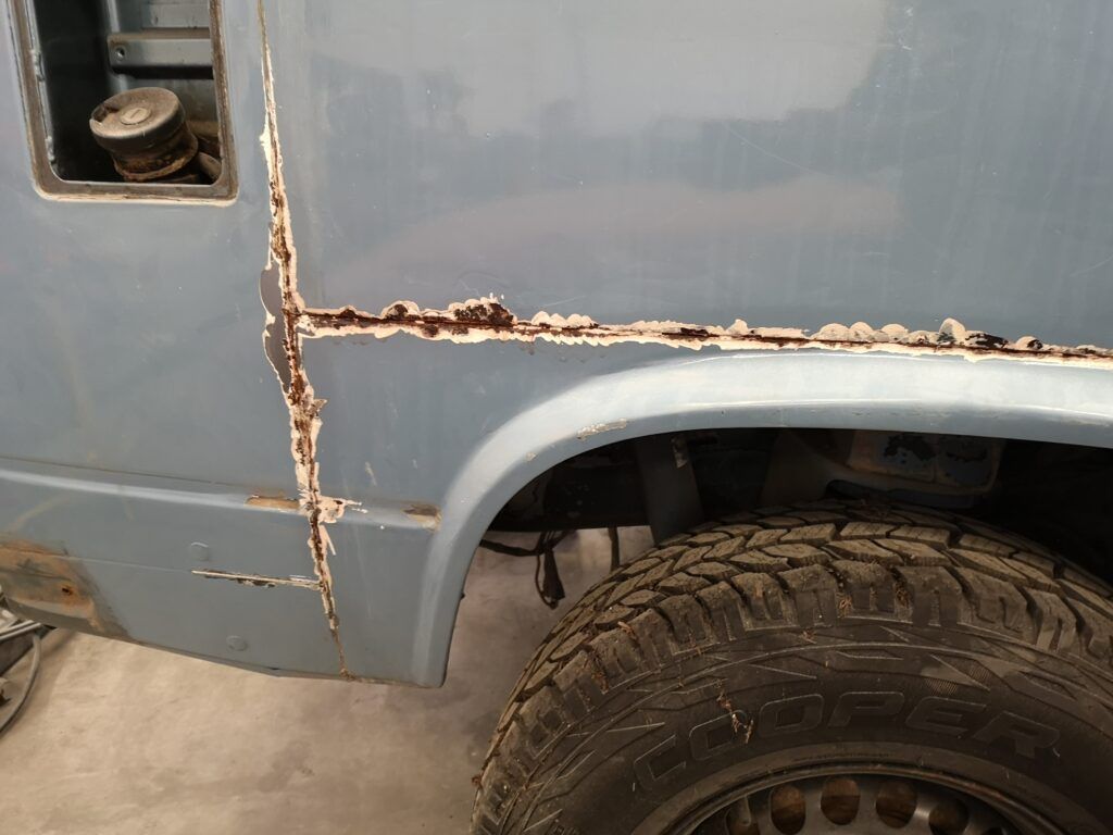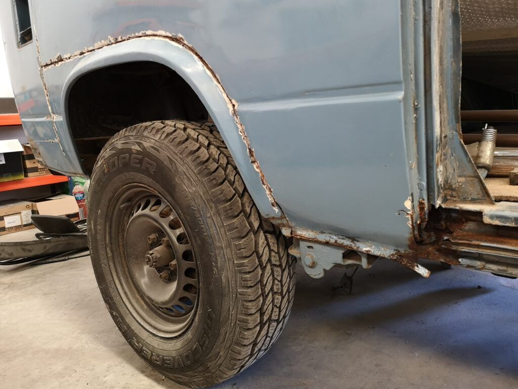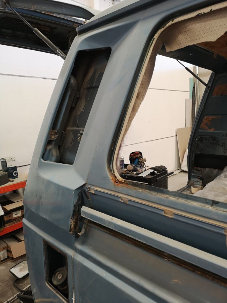La peor parte sin duda era la puerta corredera que se decidió cambiar por una que encontré de segunda mano y el paso de rueda trasero contiguo a la puerta corredera.