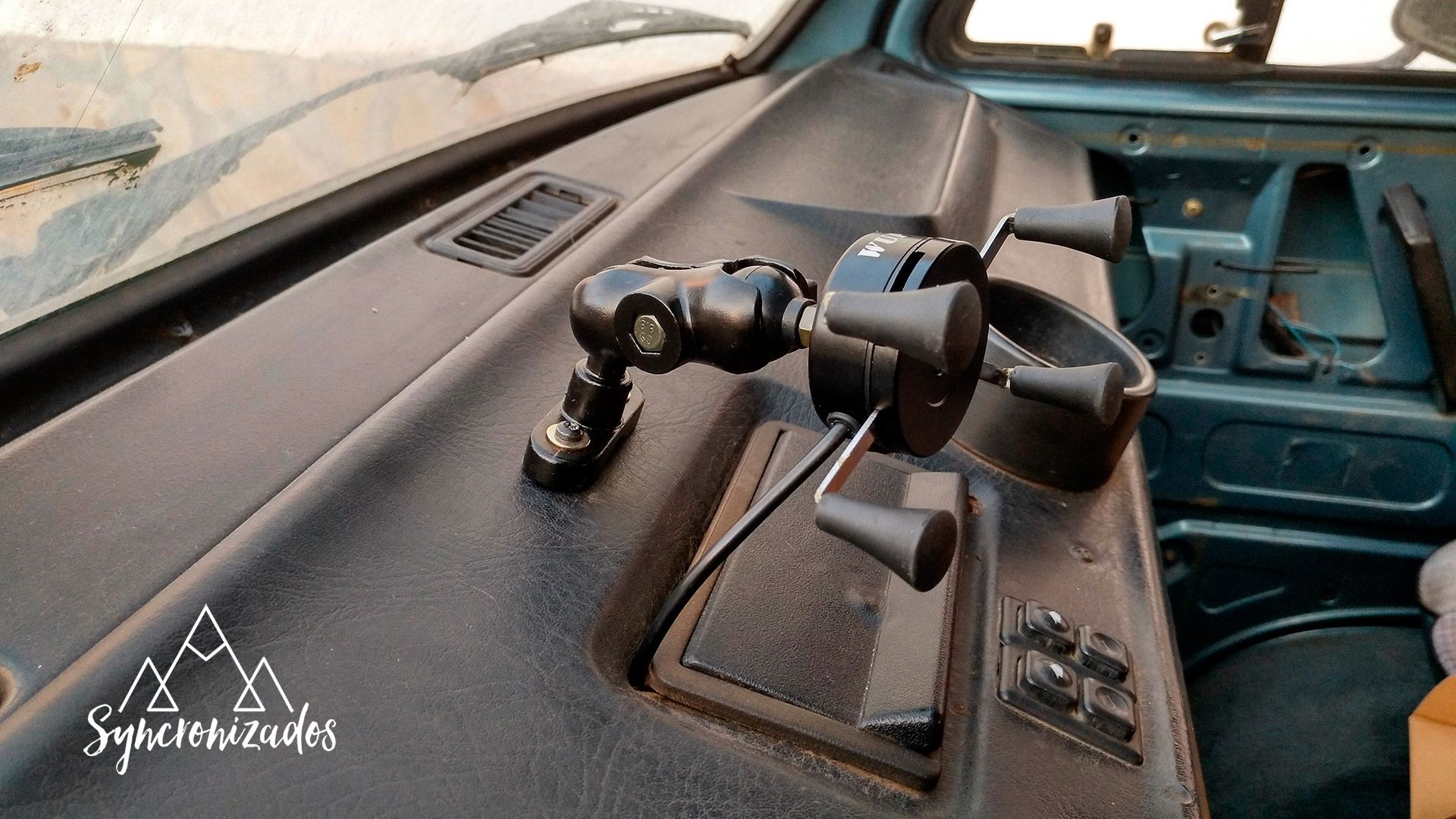 Pero al verlo pensé que podría idear algo para ponerlo en el salpicadero de la T3 Syncro. Y es que me pareció un soporte bastante estable que no se movería si me metía en el campo.