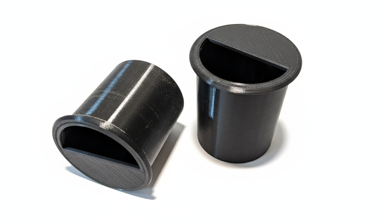 Se trata de una modificación de las tapas ciegas redondas originales de los armarios del lavabo y la cocina. La tapa incorpora un cilindro hueco que funciona como espacio extra de almacenamiento, perfecto para guardar objetos pequeños que quieras tener a mano, manteniendo todo más ordenado durante los viajes.