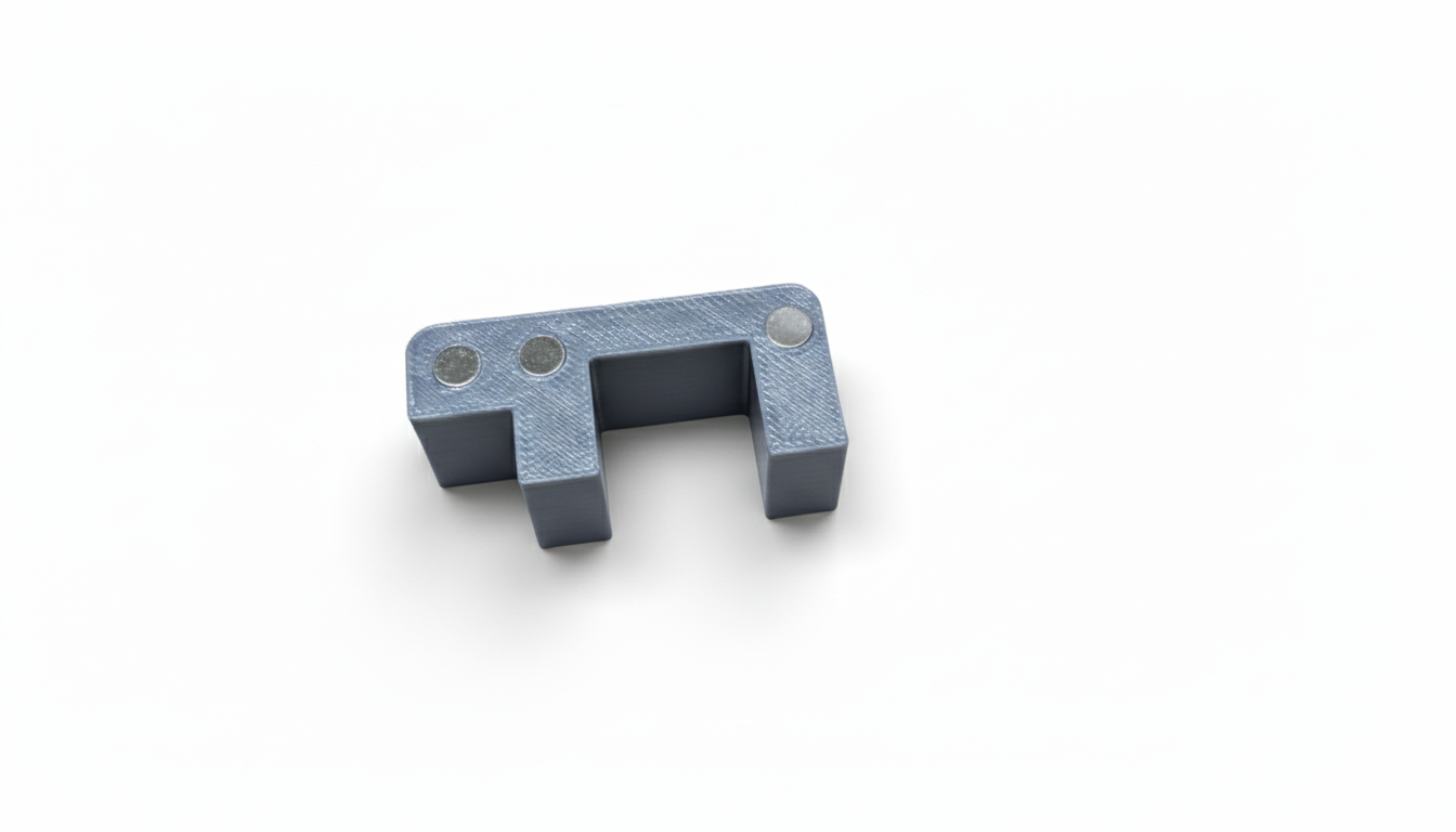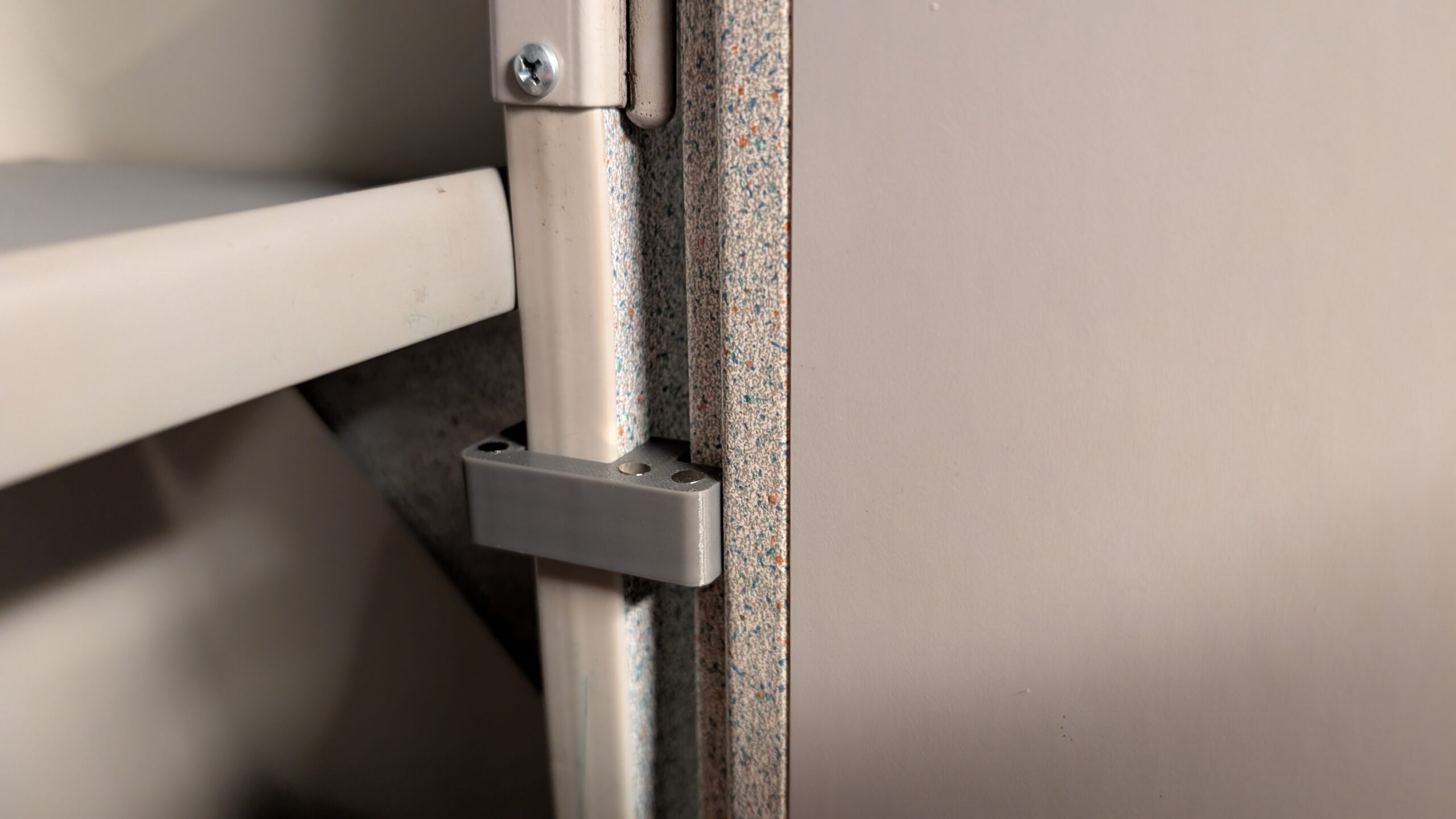 Para solucionarlo, he diseñado una pieza que actua de bloqueo de la puerta, compacto y funcional, que se coloca fácilmente en el marco del armario para mantener la puerta abierta sin esfuerzo.