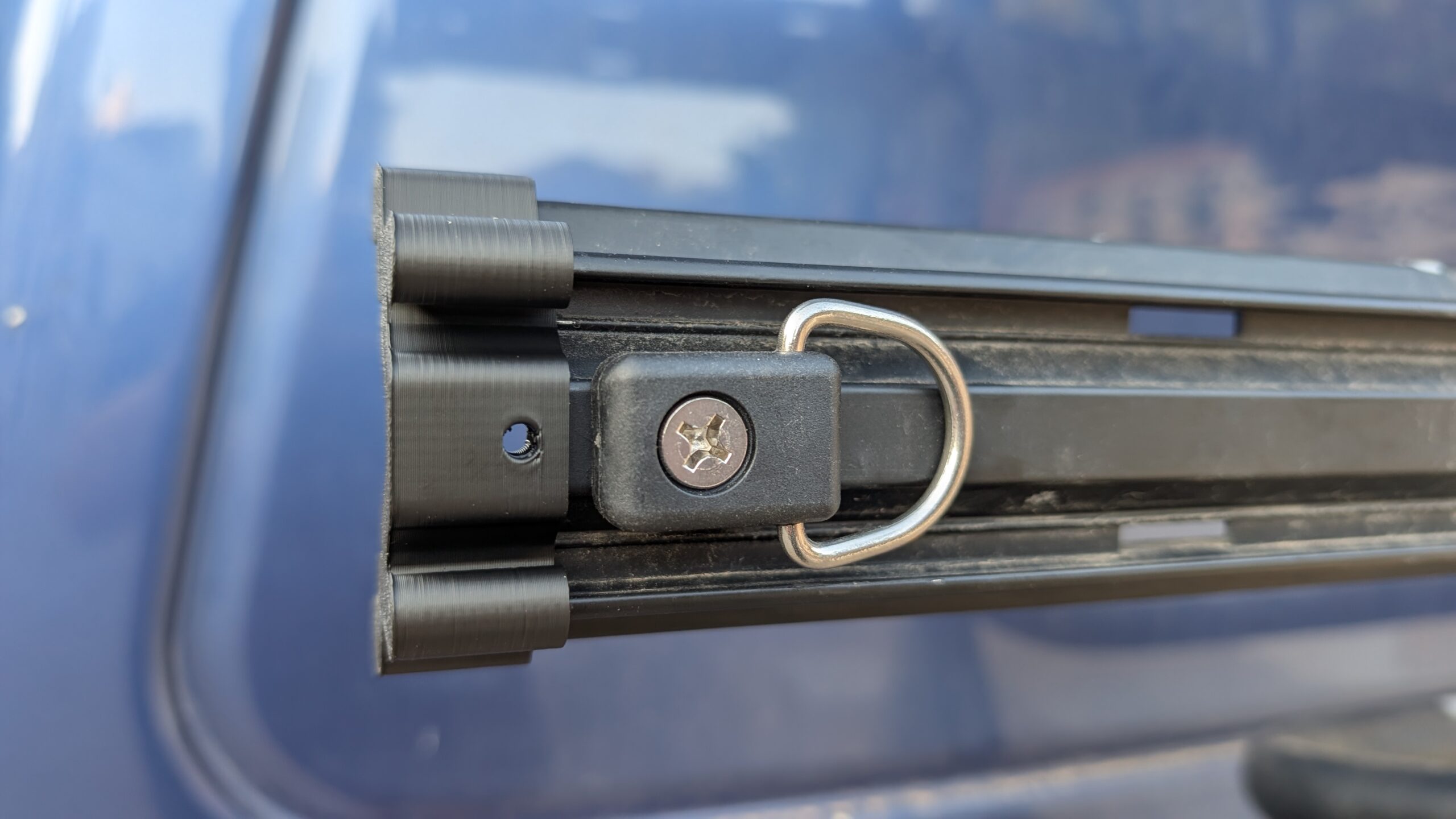 Están fabricados en ASA de alta calidad, un material resistente a los rayos UV, a la intemperie y a las temperaturas extremas, lo que los hace ideales para un uso prolongado en exteriores. Su diseño ha sido desarrollado para un ajuste perfecto y se instalan fácilmente utilizando los mismos orificios originales, sin necesidad de modificar el carril. Adicionalmente se puede atornillar gracias al orificio central.